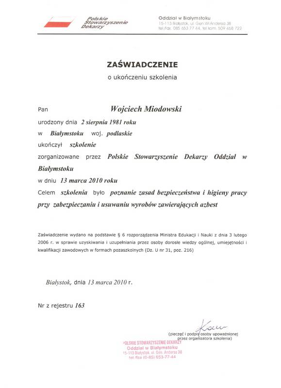 Firma nasza możę pochwalić się dużą ilością zdobytych certyfikatów
